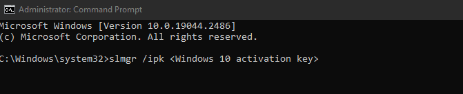 3단계: 다음 명령인 slmgr /ipk <Windows 10 활성화 키>를 복사하여 붙여넣고 다시 한 번 Enter 키를 눌러 명령을 실행합니다.