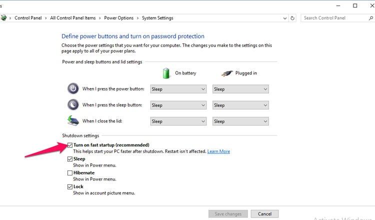 다음 스크린샷은 Windows 10 시스템에서 빠른 시작을 활성화하는 프로세스를 간략하게 보여줍니다. 간단한 프로세스이며 동일한 방식으로 설정을 비활성화할 수 있습니다. 이 작업을 수행하려면 관리자 권한이 있어야 합니다.