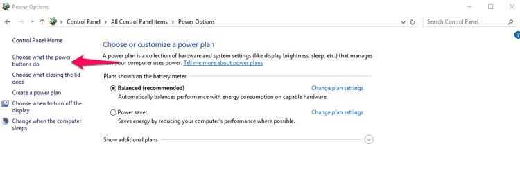2단계: 전원 단추 작동 설정을 클릭합니다.
