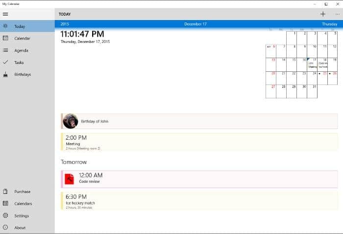 웹 기반 캘린더를 사용하지 않으려는 경우 데스크톱 앱으로 실행되는 Windows 11용 다른 캘린더 앱은 My Calendar 입니다.