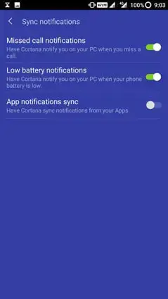 다음 페이지에 들어가면 Cortana는 부재 중 전화, 연락처 및 SMS에 액세스할 수 있는 권한을 요청합니다. 이러한 모든 요청을 허용할 수 있으며 동기화 알림 페이지에 있게 됩니다.