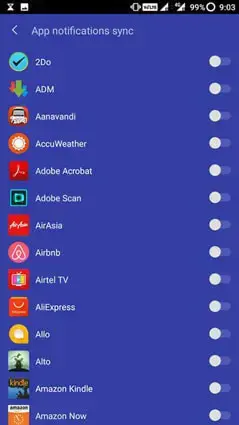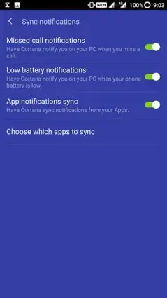 Cortana 인터페이스로 돌아가면 동기화해야 하는 모든 앱 알림을 결정할 수 있습니다. 필요한 앱을 클릭하기만 하면 Cortana가 목록에 추가합니다.