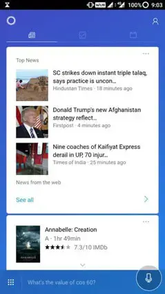 계정 생성 및 설정을 완료하면 Cortana 앱의 아름다운 시작 화면을 볼 수 있습니다. 관심이 있는 경우 디지털 어시스턴트를 사용해 볼 수 있습니다.
