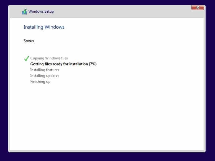 8. 그러면 선택한 파티션에 Windows 8.1이 설치됩니다. 설치 시간은 일반적으로 SSD에서 5-10분이 걸리며 플래터 기반 하드 드라이브에서는 훨씬 더 걸립니다.
