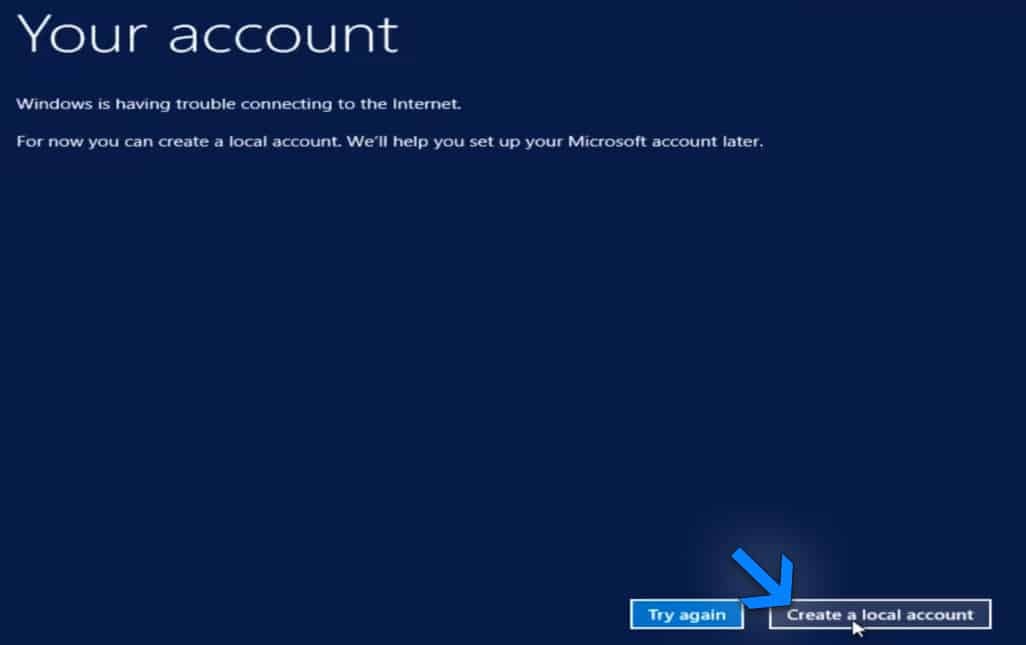 12. 인터넷 연결을 시도한 다음 Microsoft 계정에 로그인하라는 메시지가 표시됩니다. 이것이 옵션이 아닌 경우 로컬 계정을 만들 수 있습니다.