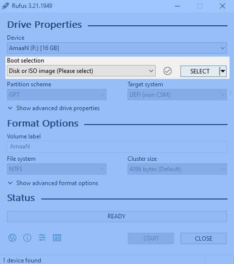 3. 옵션에서 연결된 USB 드라이브 중 하나를 선택합니다. 하나만 컴퓨터에 연결되어 있으면 자동으로 선택됩니다.