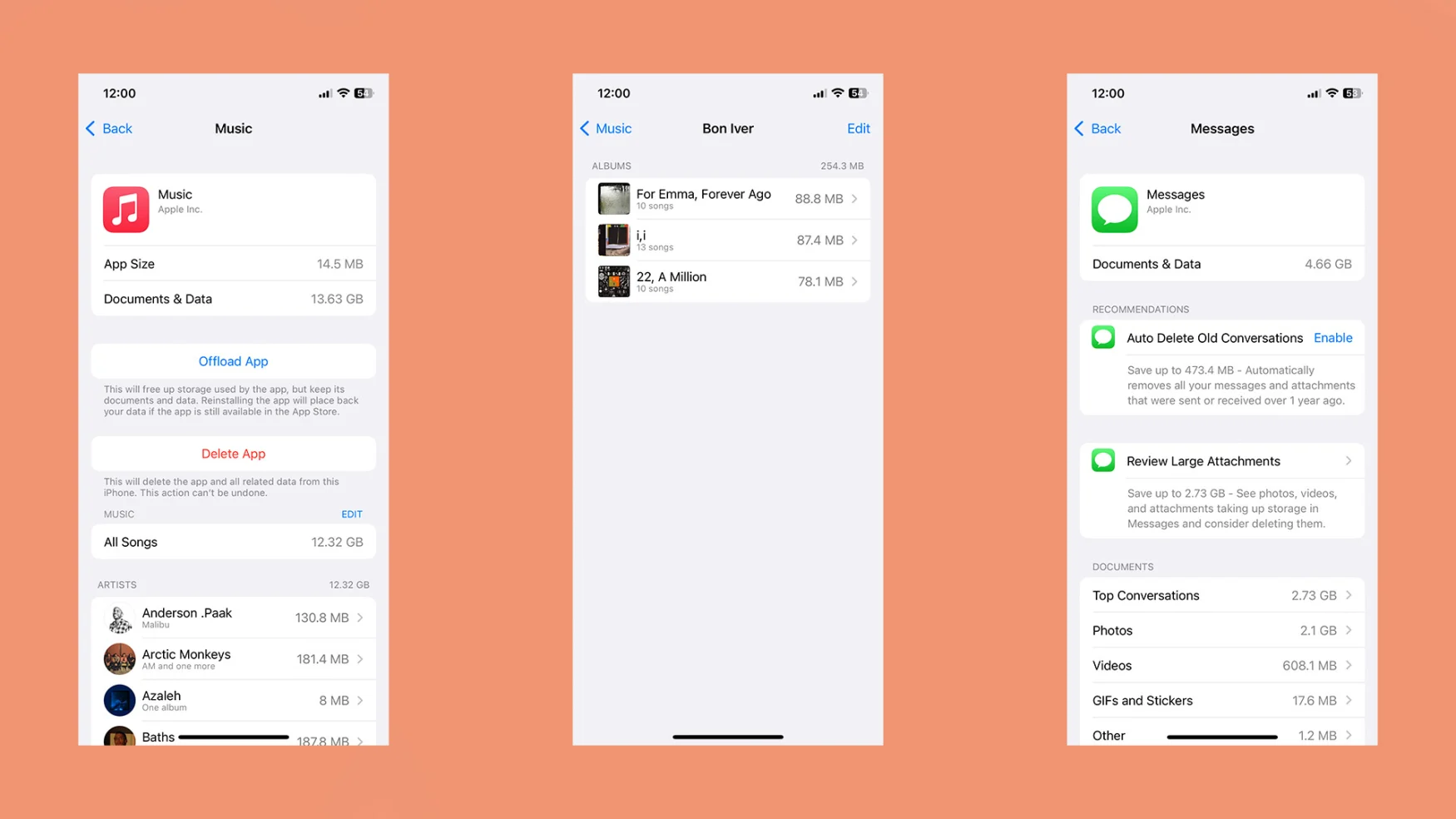 Apple Music 및 메시지를 자주 사용하는 경우 발자국 관리를 위한 몇 가지 추가 옵션을 제공하므로 탭하십시오. Apple Music의 인터페이스에는 아티스트 및 앨범별로 정렬된 iPhone 또는 iPad의 모든 다운로드 목록이 포함되어 있어 앱 자체 내에서보다 훨씬 더 나은 라이브러리 컬링 방법을 제공합니다.