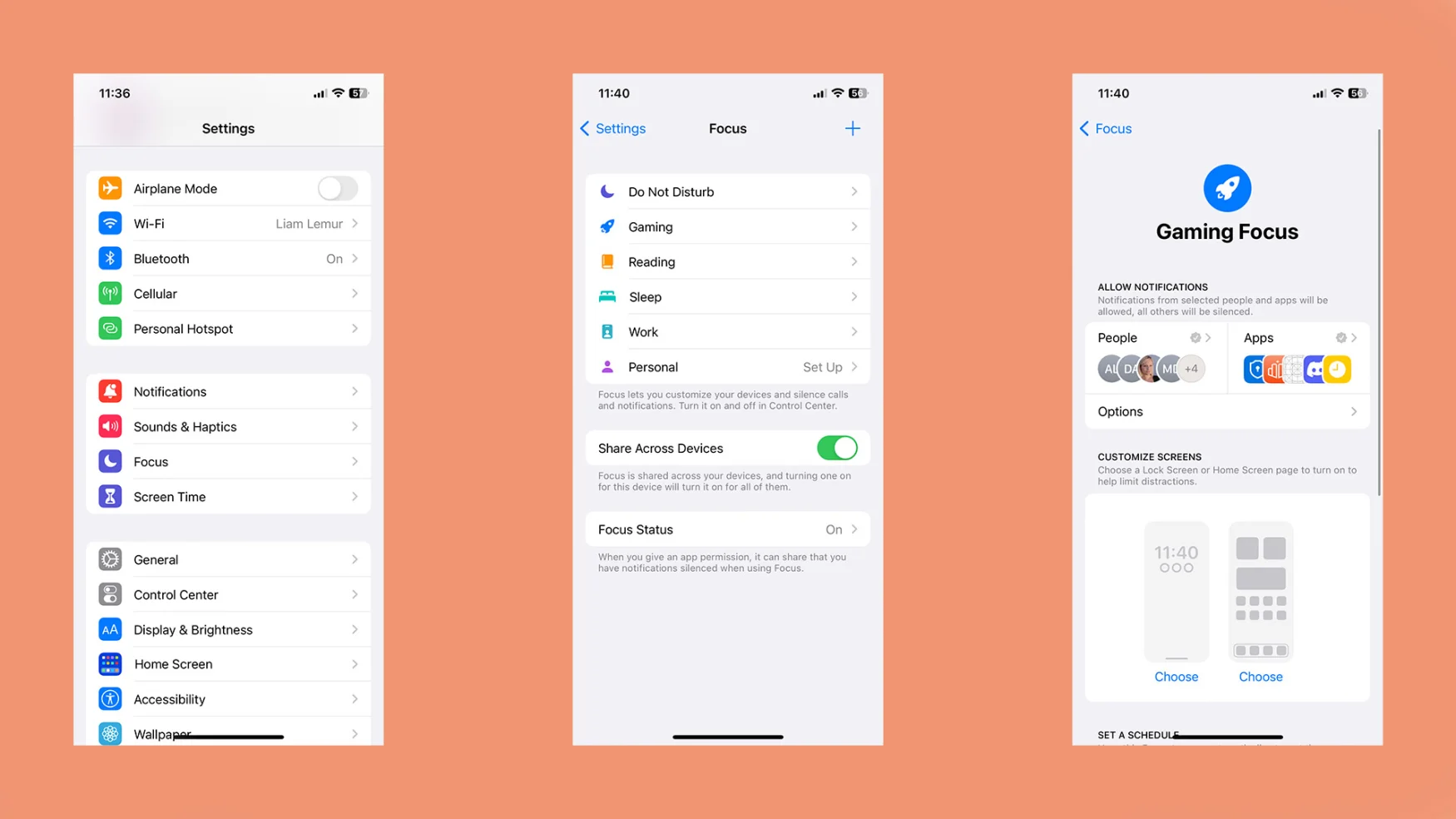 알림을 처리하는 데 사용할 수 있는 또 다른 도구는 다양한 활동에 대한 사용자 정의 방해 금지 설정을 구성할 수 있는 Apple의 Focus 기능 입니다. 기본적으로 장치에는 미리 구성된 몇 가지가 함께 제공되며 각각의 설정을 검토하여 필요에 맞게 최적화하는 것이 좋습니다.