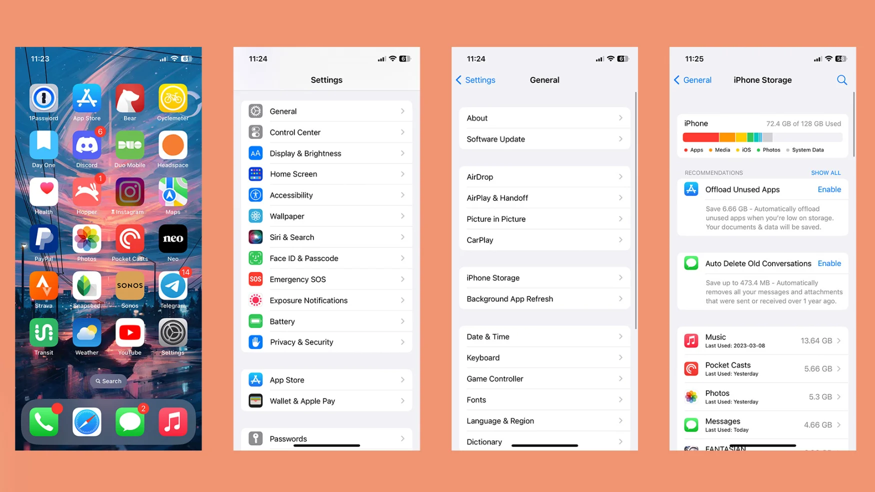 iPhone에서 공간을 확보하기 위해 사용하지 않는 앱을 삭제하라고 말할 필요는 없지만 iOS에 이를 위한 전용 도구가 있다는 사실을 모를 수도 있습니다. iPhone 또는 iPad에서 설정 앱을 연 다음 '일반', 'iPhone 저장소' 또는 'iPad 저장소'를 차례로 탭하여 액세스할 수 있습니다.