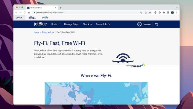 JetBlue는 기내 Wi-Fi에 대한 최고의 거래 중 하나를 보유하고 있으며, 인접한 미국 상공의 모든 항공편에서 "고속"( 약 20Mbps ) Wi-Fi를 제공하며 다른 지역에서는 일부 서비스를 제공합니다. 외부로 향하는 경우 경로 세부 정보를 확인하세요. 미국의. 이 서비스는 여행하는 모든 사람에게 무료로 제공되며 해당 속도로 비디오를 스트리밍할 수 있어야 합니다.