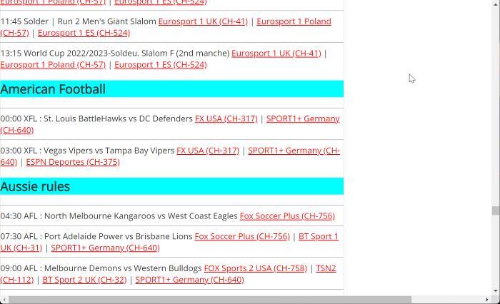 이 웹사이트는 스포츠 및 TV 프로그램을 포함한 모든 콘텐츠를 별도의 범주로 나누어 보고 싶은 이벤트를 빠르게 찾을 수 있기 때문에 탐색하기 쉽습니다.