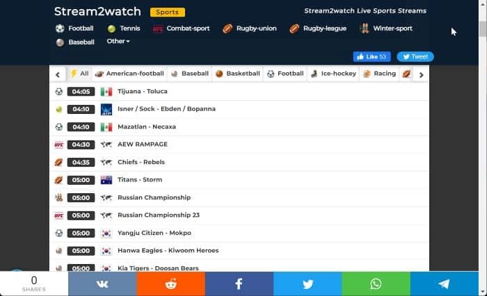 NFL 게임은 다른 스포츠 이벤트에 대한 신뢰할 수 있는 링크를 제공하는 Stream2Watch 웹 사이트를 통해 라이브로 시청할 수도 있습니다.