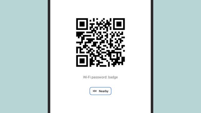 다른 사람에게 암호를 알려주거나 QR 코드를 스캔하여 연결하도록 할 수 있습니다. 스캐닝 은 Android 또는 iOS의 기본 카메라 앱을 사용하여 작동하며 탭하여 네트워크에 연결할 수 있는 작은 링크가 나타납니다. 또는 Nearby를 탭하여 Android의 Nearby Share 기능을 사용하여 네트워크 세부 정보를 다른 기기(또한 Android를 실행 중이어야 함)로 직접 전송할 수 있습니다.