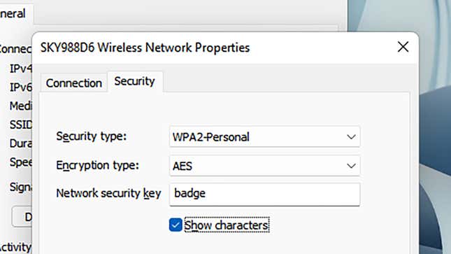 Windows는 Wi-Fi 암호를 다른 사람과 빠르게 공유하는 것을 실제로 쉽게 만들지는 못하지만 적어도 화면에서 암호를 본 다음 다른 사람에게 그것이 무엇인지 알려주거나 이메일 또는 인스턴트 메신저 채팅에 입력할 수 있습니다.