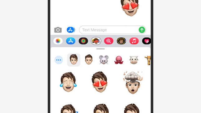 Apple은 기술적으로는 스티커에 더 가깝지만 사용자가 직접 만들 수 있는 Memoji 세트를 통해 수년 동안 사용자 지정 이모티콘을 사용할 수 있도록 했습니다. 아직 Memoji(및 Animoji)의 세계에 뛰어들지 않았다면 기본 키보드 위에 있는 만화 얼굴 아이콘(또는 보이지 않는 경우 App Store 아이콘)을 탭한 다음 세 개의 점을 탭하여 시작하십시오.