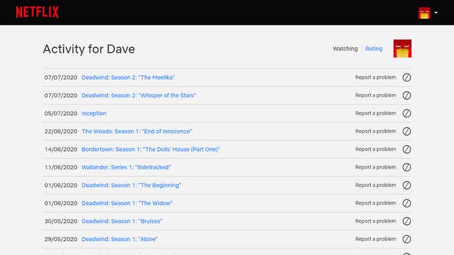 웹과 모바일 모두에서 계정 메뉴(웹에서는 아바타 뒤에 있고 모바일에서는 더 보기 버튼 뒤에 있음) 를 통해 시청 기록을 파헤칠 수 있습니다. 사용자 프로필을 탭한 다음 시청 활동 옆에 있는 보기를 탭 하면 지금까지 본 모든 항목이 드러납니다. 제목을 숨기려면 오른쪽에 있는 아이콘을 탭하고 모든 항목을 지우려면 모두 숨기기를 탭하세요.