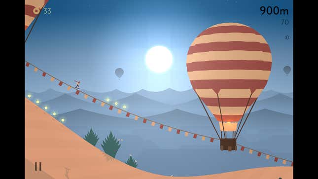 이전에 Alto 게임을 해본 적이 없다면 다음과 같이 예상할 수 있습니다. 본질적으로 언덕을 미끄러져 내려가고, 장애물을 피하고, 트릭을 수행하고, 포인트와 보너스를 획득하는 등의 일을 합니다. Alto's Odyssey를 간략한 개요보다 훨씬 좋게 만드는 것은 게임의 미학과 다양한 환경의 다양성에 대한 관심과 관심입니다.