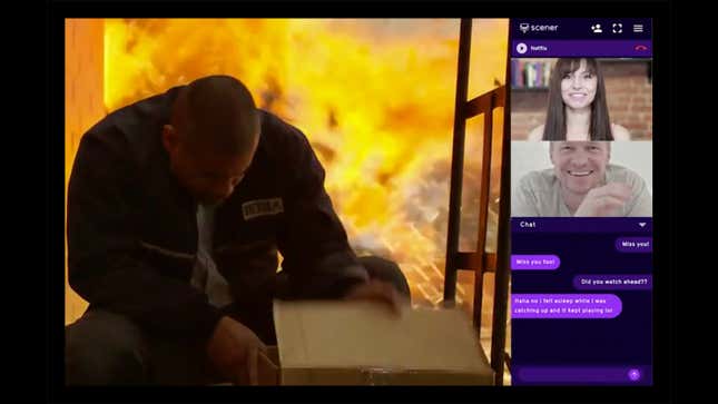 Scener는 스스로를 가상 영화관으로 브랜드화했으며 Netflix Party와 마찬가지로 Chrome 확장 프로그램입니다. Netflix 외에도HBO의 다양한 스트리밍 플랫폼도 지원합니다. 데스크톱 앱과 매우 흡사하게 실행되어 브라우저를 백그라운드에 숨기고 보고 있는 콘텐츠를 한 쪽에, 채팅 상자를 다른 쪽에 배치합니다.