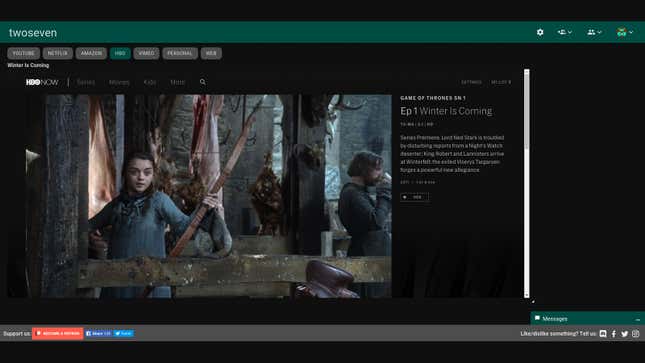 TwoSeven은 브라우저를 통해 다른 사람들과 스트리밍할 수 있는 거의 모든 것을 시청할 수 있다는 점에서 Kast와 유사합니다. 하지만 Kast보다 약간 더 가벼우므로선호할 수도 있고 그렇지 않을 수도 있습니다. 브라우저 확장 프로그램은 모든 동기화 작업을 처리하지만 Netflix Party 및 Scener와 달리 Chrome 및 Firefox 모두에서 사용할 수 있습니다.