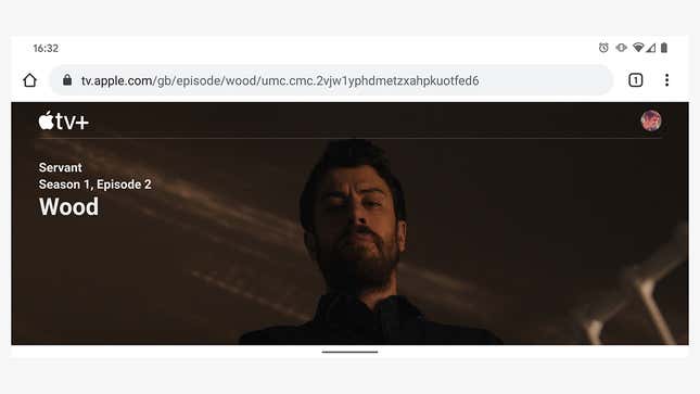 Android 기기 에서 Apple TV+ 픽스를 받으려면 버그가 있지만 동일한 Apple TV+ 웹 앱을 사용해 볼 수 있습니다. Pixel 4 XL의 Google Chrome에서 시도했을 때 무엇이든 보려고 할 때마다 검은색 화면(재생 컨트롤이 오버레이됨)을 만나기 전에 로그인하고 쇼 선택을 볼 수 있었습니다.