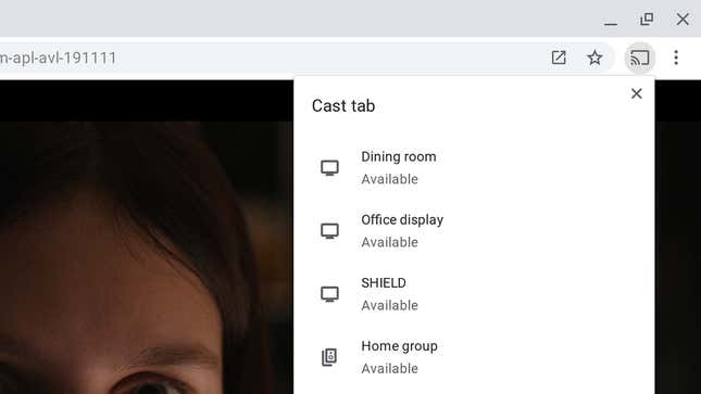 할 수 있는 일은 Chrome 브라우저 탭에서 Apple TV+ 웹 앱을 로드한 다음 해당 탭을 Chromecast 또는 Android TV로 전송하는 것입니다(모든 Android TV 기기는 Chromecast의 이중 역할을 수행함). Chrome 메뉴(점 3개)를 클릭한 다음 전송을 클릭 합니다.. 우리는 이것을 테스트했으며 충분히 잘 작동합니다. 가장 부드러운 비디오 및 오디오 경험은 아니지만 쇼와 영화는 확실히 시청할 수 있습니다.