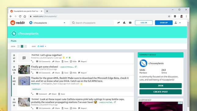 관엽 식물과 관련된 모든 것. 이것은 특정 주제에 초점을 맞추고 정말 잘 수행하는 subreddit 보석 중 하나입니다. 자신의 관엽 식물을 돌보는 데 대한 조언과 다른 사람의 식물 사진을 많이 접하게 될 것입니다. 조언을 구하거나 영감을 얻거나 자신의 식물 컬렉션을 자랑하기에 좋은 곳입니다.
