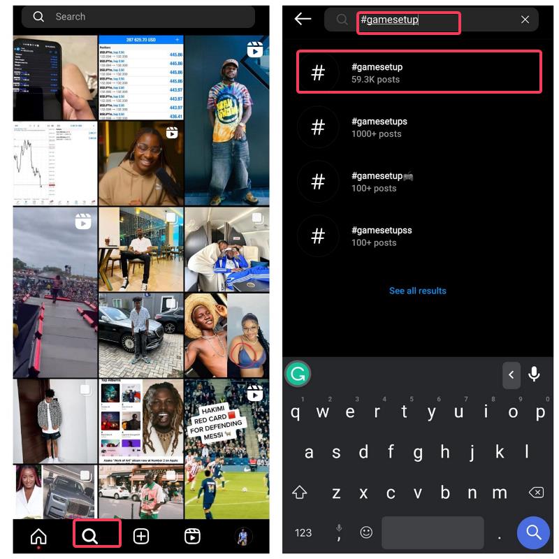 Instagram에서 해시태그를 사용하여 역방향 이미지 검색을 수행할 수도 있습니다. 예를 들어 게임 설정에 대한 게시물을 찾으려는 경우 찾고 있는 항목에 따라 해당 용어가 포함된 해시태그를 사용할 수 있습니다. 다음 단계에 따라 Instagram에서 역방향 이미지 검색을 위해 해시태그를 사용할 수 있습니다.