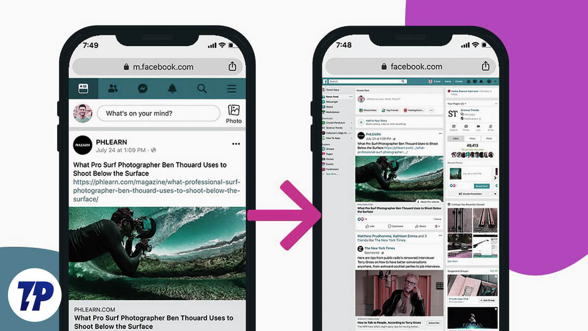 Android 및 iOS 스마트폰 모두에서 전체 Facebook 데스크톱 사이트를 여는 방법을 보여드리겠습니다. 모바일 브라우저가 필요하며 프로세스 중에 Facebook 계정에 로그인해야 합니다(아직 로그인하지 않은 경우). 여기에서 Android 또는 iOS 스마트폰에서 데스크톱 사이트를 여는 방법을 알아보세요.