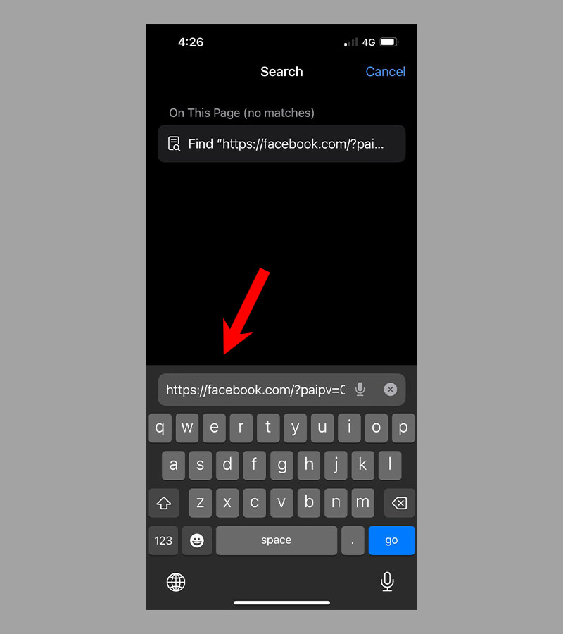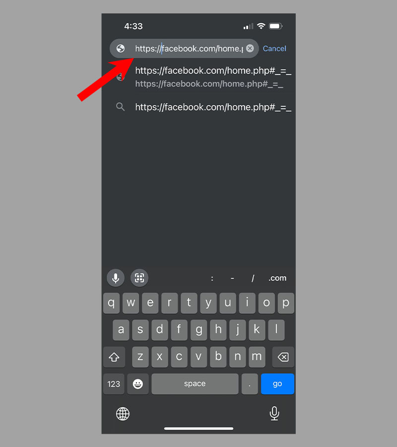 2. 그런 다음 하단 주소 표시줄에 Facebook 웹사이트( www.facebook.com ) 의 URL을 입력 하고 키보드의 '이동' 버튼을 탭합니다.