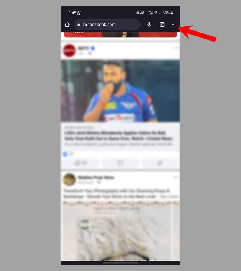 4. Facebook 홈 페이지(또는 타임라인 페이지)에 있으면 브라우저의 주소 표시줄에서 점 3개 메뉴를 누릅니다.