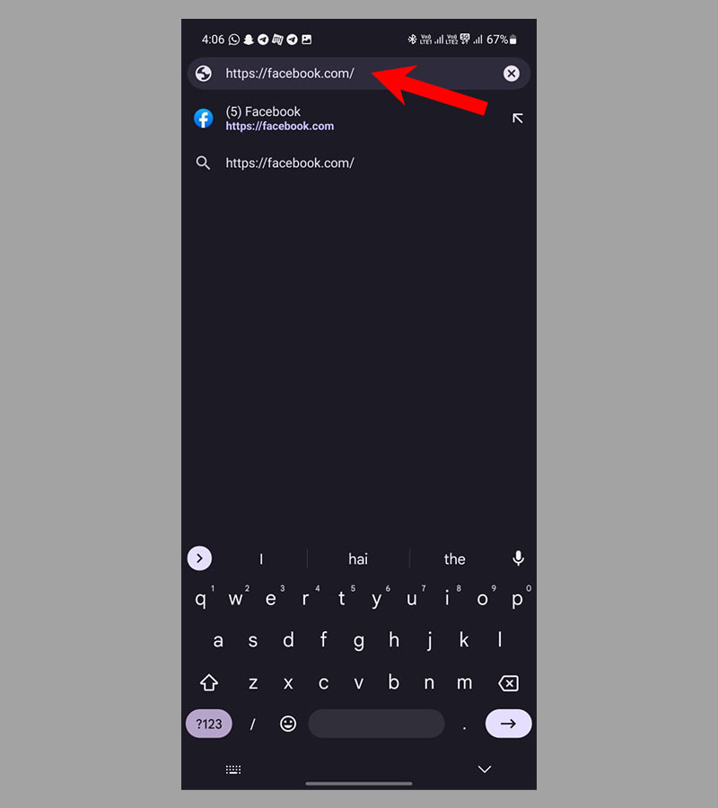 6. 마지막으로 페이스북 데스크톱 사이트의 전체 버전에 액세스하려면 주소 표시줄을 누르고 URL을 “www.m.facebook.com”에서 “www.facebook.com”으로 변경한 다음 '이동' 키를 누릅니다. 키보드에서 데스크톱 사이트를 엽니다.