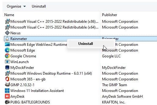25. 이제 Rainmeter, Nexus 및 WinLaunch 프로그램을 제거합니다. 시스템 파일을 수정하거나 레지스트리 값을 조정하지 않았으므로 시스템이 이전 상태로 복원됩니다.
