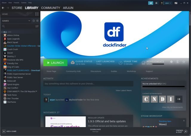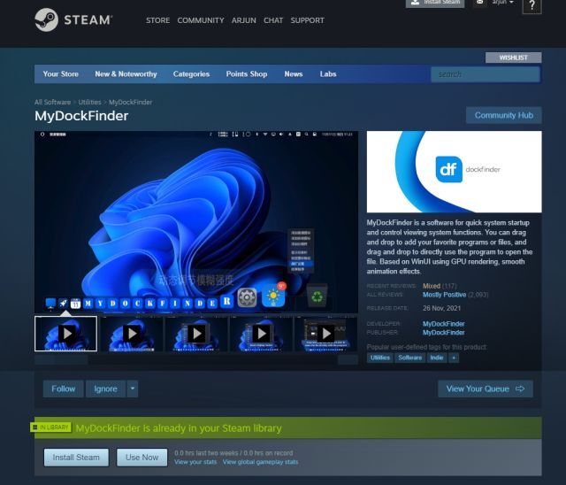 2. 그런 다음 Windows PC에 Steam ( 무료 ) 을 설치 하고 라이브러리로 이동합니다. 여기에서 방금 구입한 MyDockFinder 앱을 찾을 수 있습니다. "설치"를 클릭하고 실행하십시오.