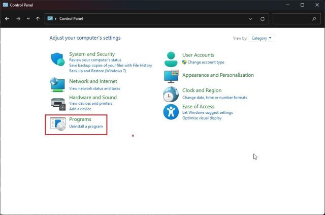 24. Rainmeter를 제거하고 모든 변경 사항을 제거하려면 Windows에서 제어판을 열고 " 프로그램 "으로 이동합니다.