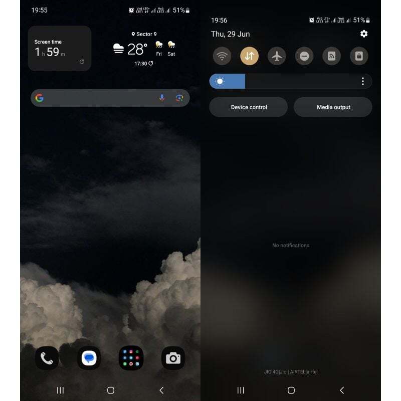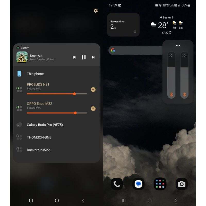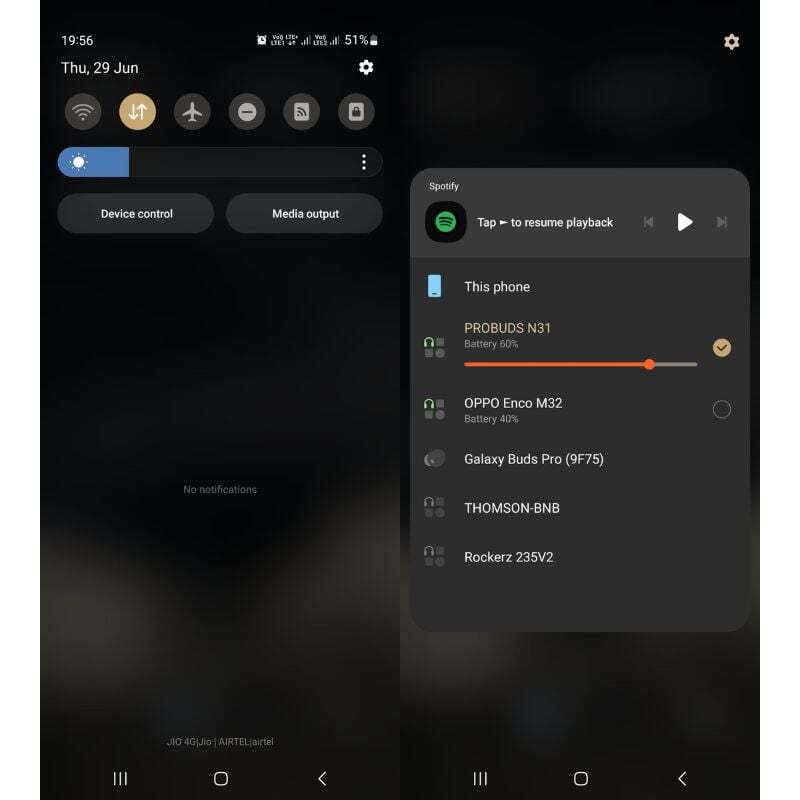 기본적으로 두 오디오 장치는 동시에 동일한 오디오 출력을 수신합니다. 그러나 OneUI의 알림 패널에서 미디어 옵션에 액세스하여 각 장치의 볼륨을 개별적으로 조정할 수 있습니다.