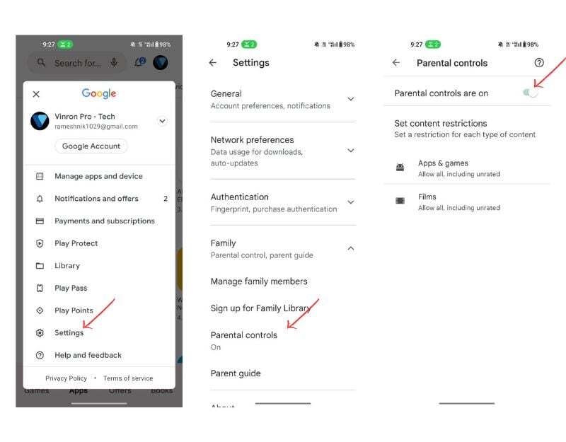- Google Play 스토어에서 인앱 구매를 비활성화했는지 확인하세요. Google Play 스토어의 자녀 보호 기능은 실수로 인한 구매가 아닌 앱 표시만 방지합니다.