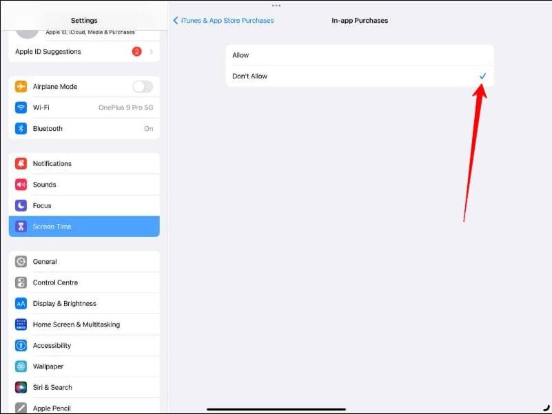 - 인앱 구매 를 탭한 다음 허용 안 함 을 선택합니다.