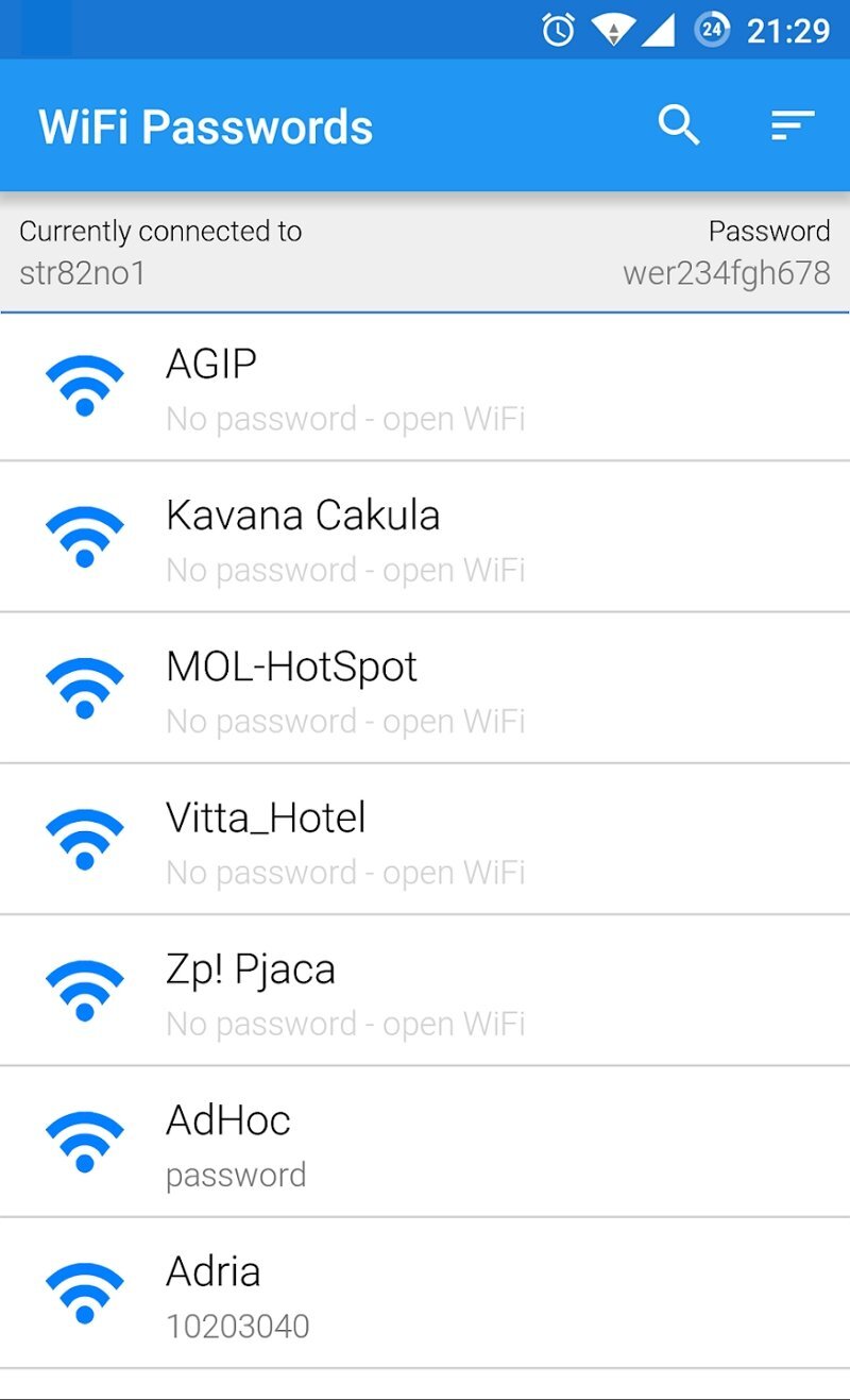 - 앱을 엽니다. 기기에 저장된 Wi-Fi 네트워크 목록과 그 아래에 비밀번호가 표시됩니다.