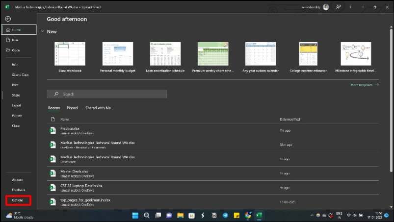 - 1단계: 충돌 후 모든 것이 정상으로 돌아오면 Excel 앱을 다시 엽니다. 파일이 다른 문서를 복구하기 위한 새로운 섹션이 나타납니다.