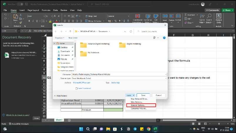 - 2단계: 다른 이름으로 저장 대화 상자 에서 도구 버튼을 클릭한 다음 일반 옵션을 클릭합니다 .