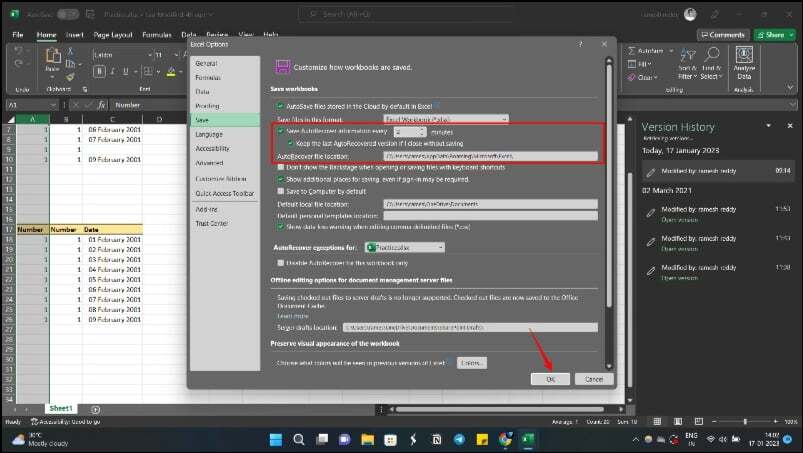 Excel에는 이름에서 알 수 있듯이 파일 버전을 저장할 때마다 수동으로 저장 단추 를 클릭하지 않고도 작업을 자동으로 저장하는 자동 저장 기능이 내장되어 있습니다 . 새로운 자동 저장 기능은 Microsoft Office 365 에서만 사용할 수 있습니다 . 최신 버전의 Excel을 사용하지 않는 경우 자동 저장 기능을 사용하여 10분마다(또는 지정한 기간 이후) 작업을 자동으로 저장합니다. 이 옵션이 활성화되면 작업의 임시 사본이 저장되고 10분마다 다시 저장됩니다.