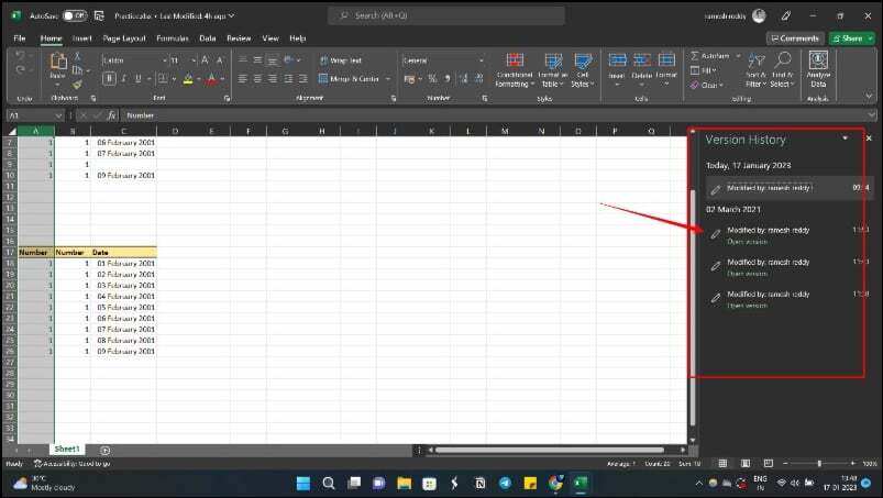 - 3단계: 버전 기록을 열면 파일의 이전 버전 목록을 볼 수 있습니다.