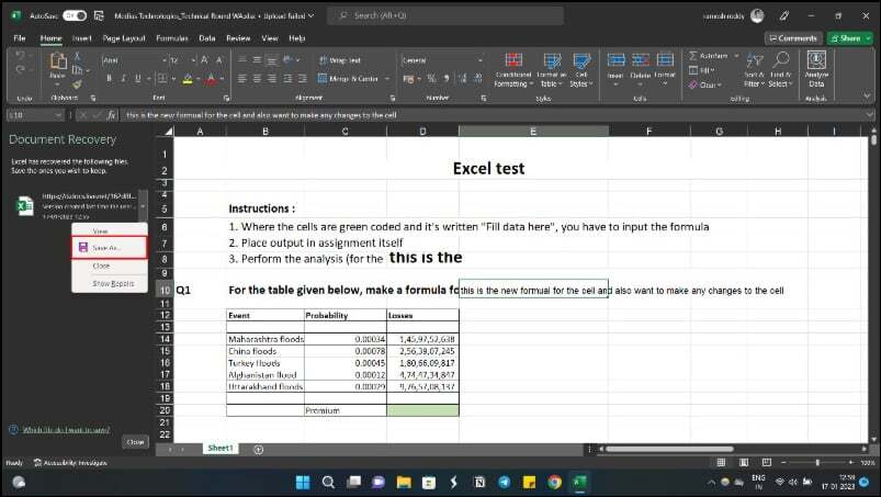 - 3단계: AutoRecover Excel 파일을 열고 필요에 따라 저장하거나 복사합니다.