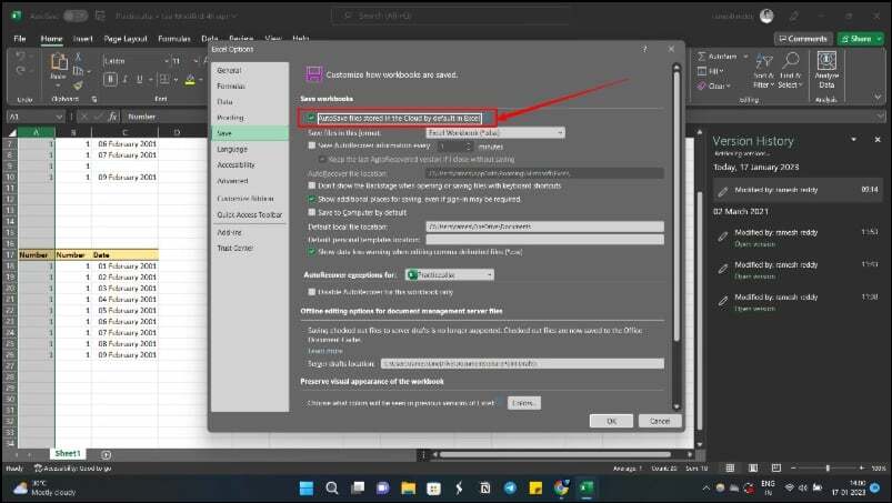 - 4단계: 이제 " Excel에서 기본적으로 OneDrive 및 SharePoint Online 파일 자동 저장 " 옵션을 선택합니다 . 이 옵션은 Microsoft Office 365 에서만 작동하며 작업을 몇 초마다 실시간으로 저장합니다.