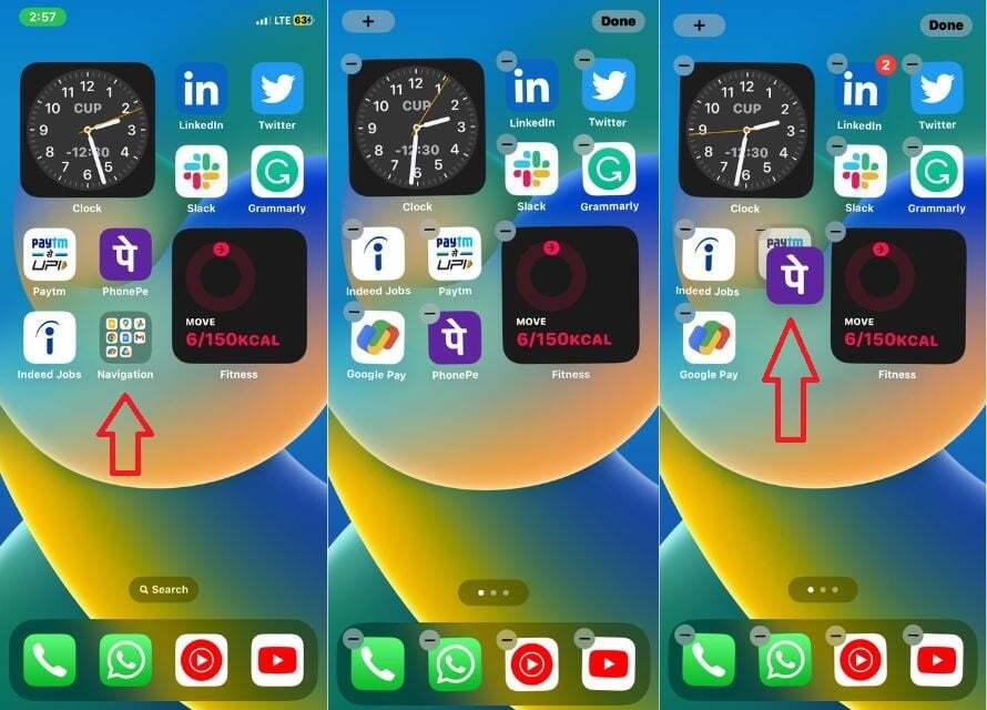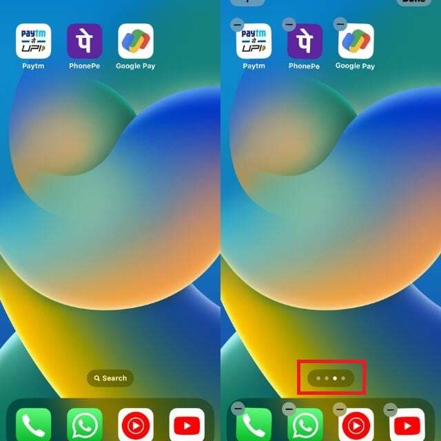 - 앱이 흔들릴 때까지 iPhone 홈 화면의 빈 공간을 길게 누릅니다.