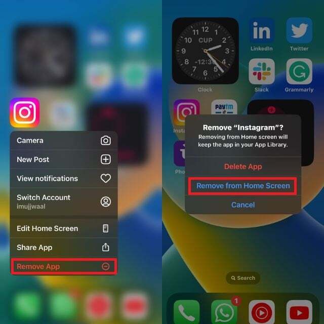 iPhone 앱 라이브러리의 장점 중 하나는 앱을 삭제하지 않고 홈 화면에서 숨길 수 있다는 것입니다. 이 기능은 기기에 많은 앱이 있고 홈 화면을 깔끔하게 정리하고 싶을 때 특히 유용합니다. 홈 화면에서 앱 라이브러리로 앱을 숨기려면 아래 단계를 따르십시오.