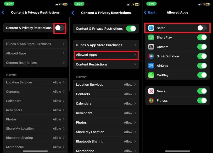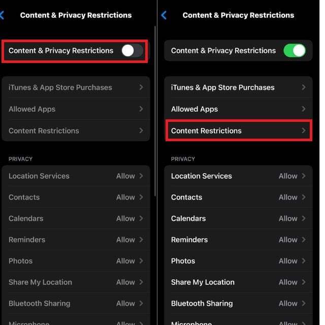 - Content & Privacy Restrictions 오른쪽에 있는 토글 스위치를 켭니다.