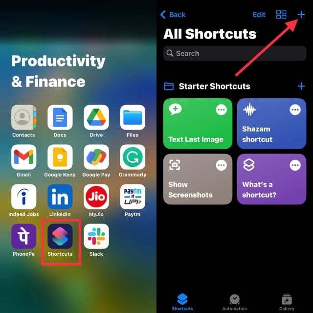 이 방법에서는 앱을 숨기지 않고 아무도 어떤 앱인지 추측할 수 없도록 아이콘과 앱 이름을 변경합니다. iPhone에서도 이것이 가능합니까? 예, 그렇습니다. 이를 위해 바로 가기 앱을 사용합니다. 아래 단계를 따르십시오.