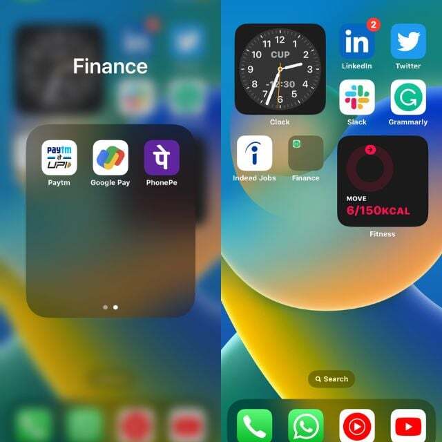 - 앱을 어딘가에 숨기려면 여러 페이지가 있는 폴더를 만들고 앱을 끌어다 놓습니다.