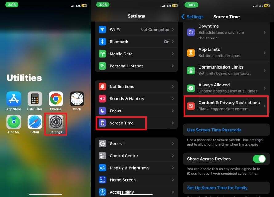 - 콘텐츠 및 개인정보 보호 제한 을 탭합니다.
